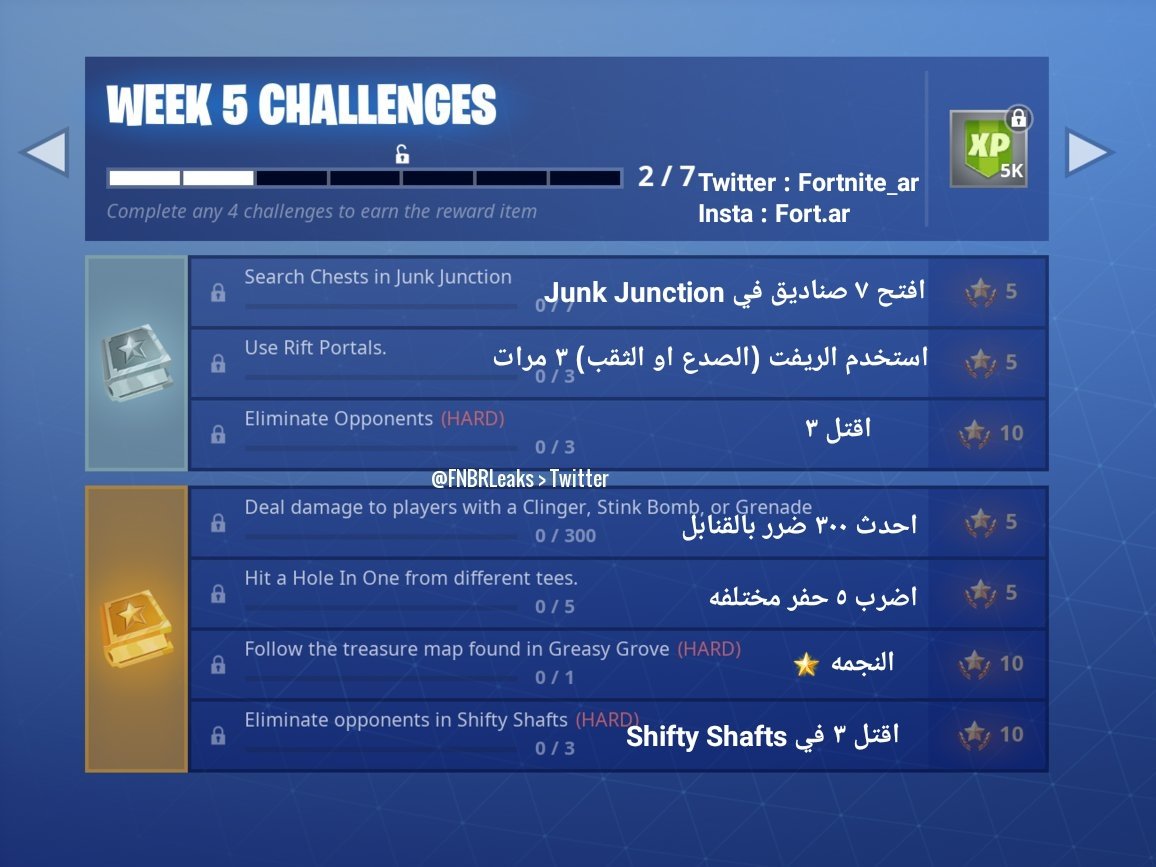 أخبار فورت نايت Su Twitter ترجمة تحديات الأسبوع الخامس من الموسم السابع فورتنايت
