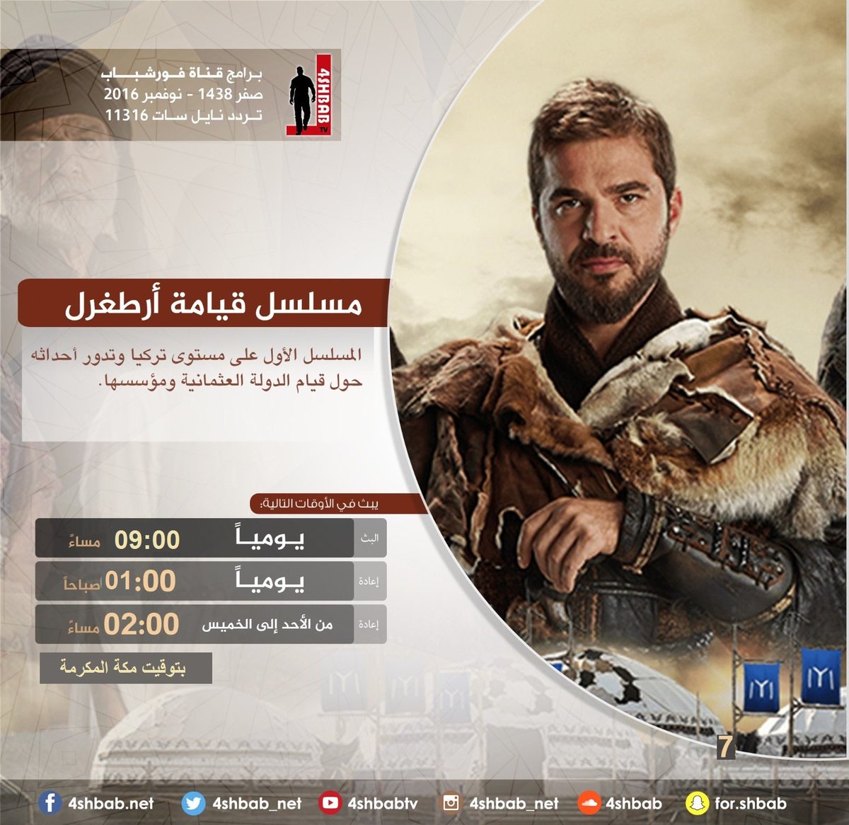 تردد قناة فور شباب الناقلة لحلقات المسلسل التركي قيامة أرطغرل الجزء الرابع على النايل سات 2018 نجوم مصرية