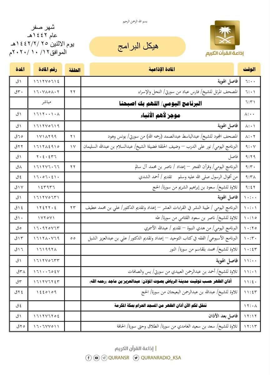 إذاعة القرآن الكريم On Twitter هيكل تلاوات وبرامج إذاعة القرآن الكريم ليوم الجمعة 1441 7 4