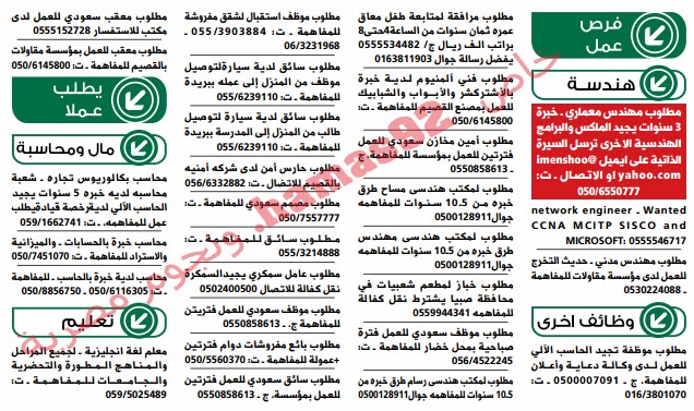 وظائف السعودية وظائف جريدة الوسيلة القصيم السعودية اليوم السبت 26 10 2013 وظائف عربية وخليجية