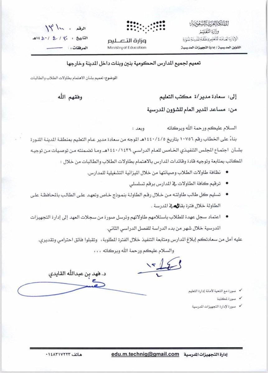ملتقى معلمي السعودية On Twitter تعليم المدينة يوجه بترقيم طاولات الطلاب برقم تسلسلي وتسليمها للطلاب كـعهدة وتوقيعهم على تعهد بالمحافظة على الطاولات طوال فترة تواجد الطالب في المدرسة Https T Co Nbtkofptwq