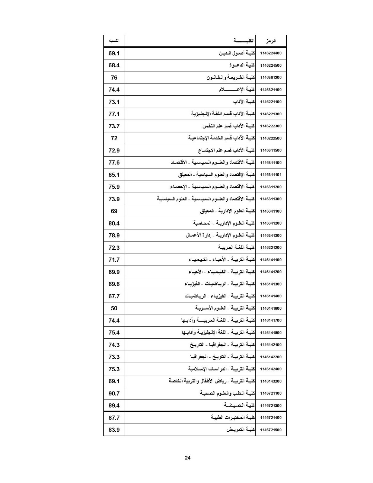 دليل النسب العامة للجامعات السودانية التي تم القبول بها في العام الماضي 2012