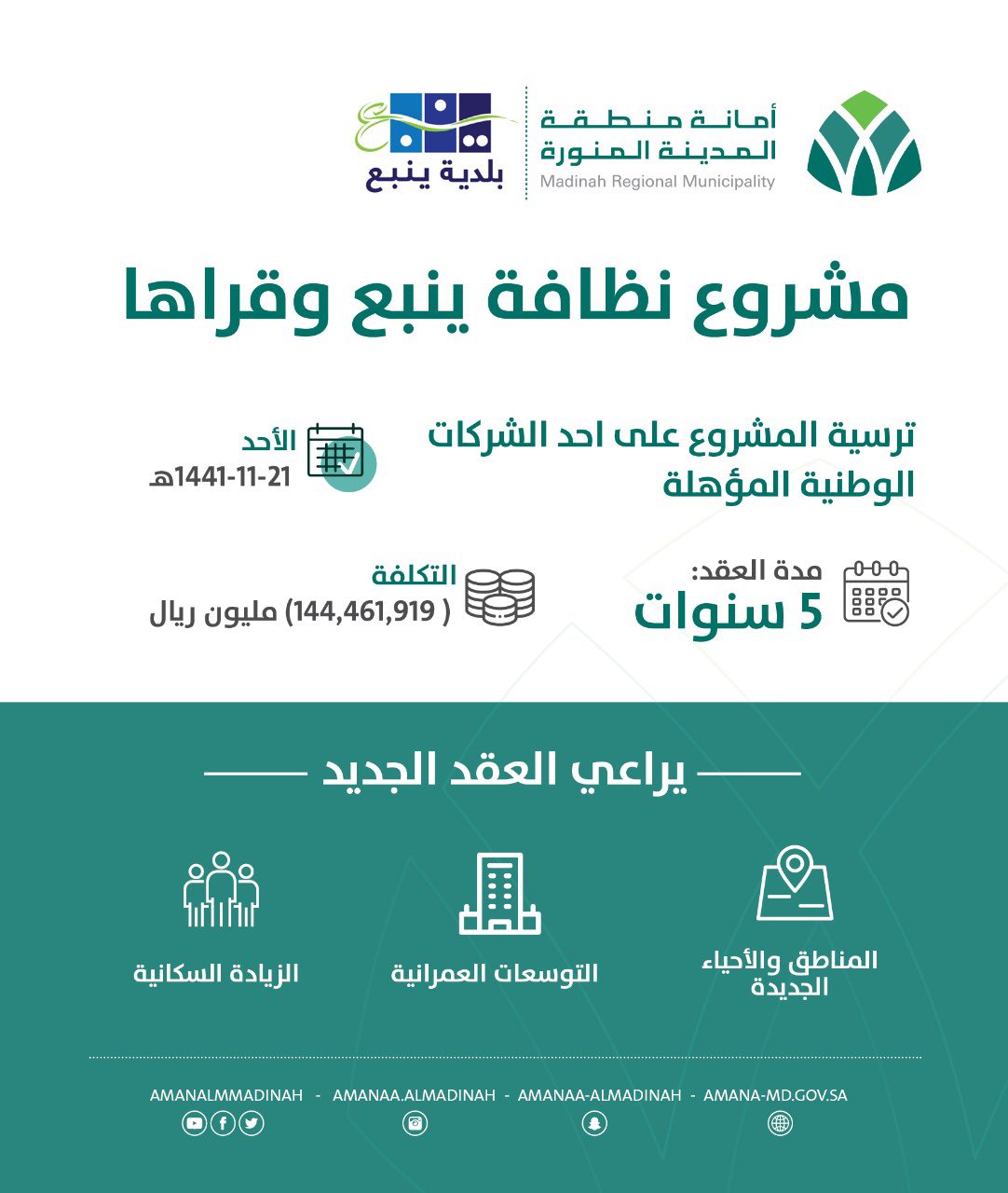 أمانة منطقة المدينة المنورة On Twitter أمين المدينة يعتمد ترسية مشروع عقد نظافة ينبع لمدة 5 سنوات