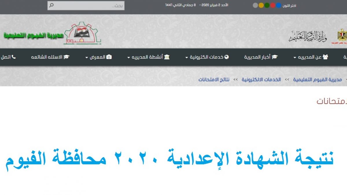 نتيجة الشهادة الاعدادية محافظة الفيوم 2020 أخر العام برقم الجلوس موقع مديرية التربيه والتعليم بالفيوم